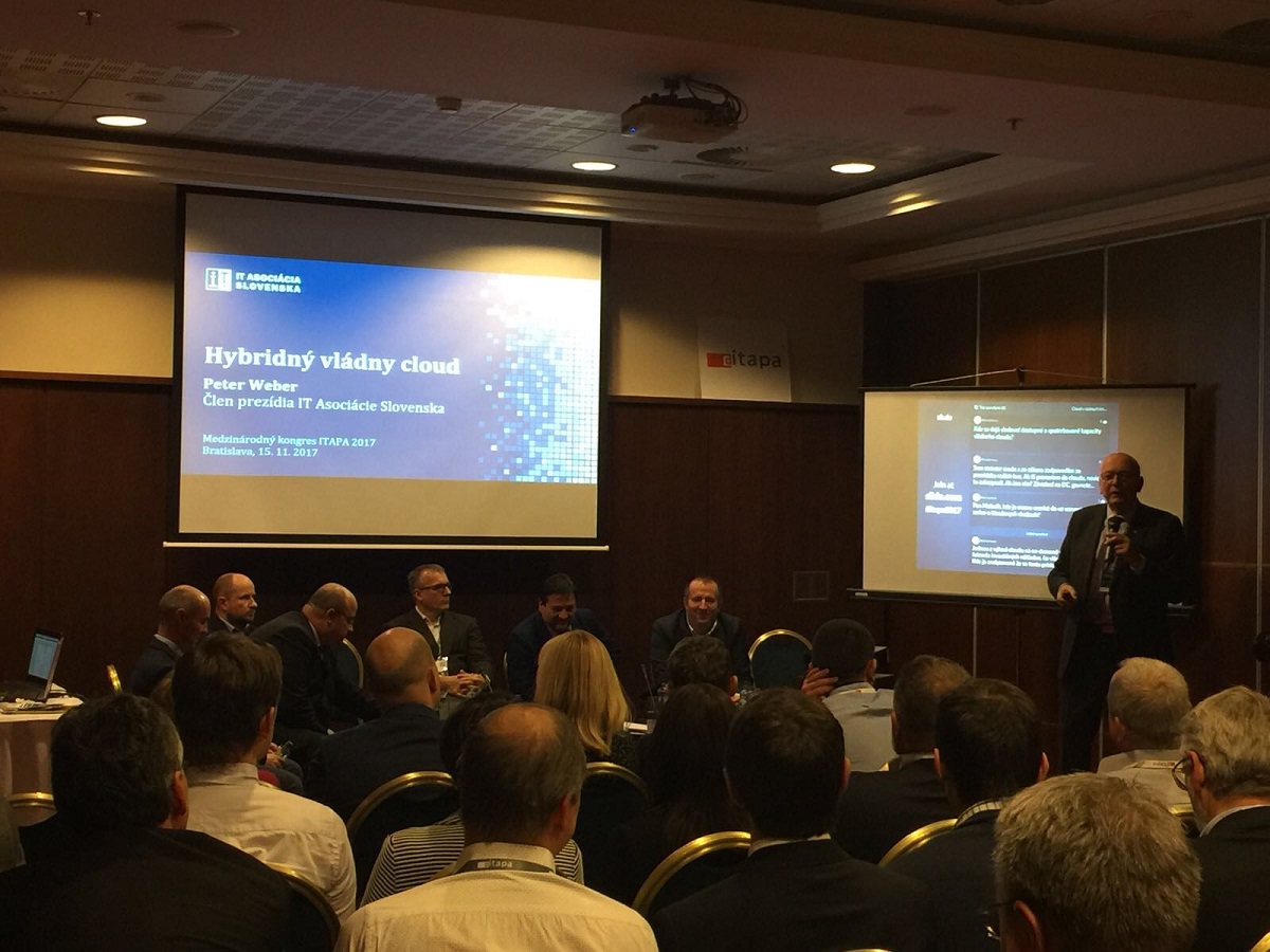 Člen prezídia IT Asociácie Slovenska Peter Weber na kongrese ITAPA 2017 predstavil riešenia v oblasti hybridného vládneho cloudu, typické prípady jeho využitia, funkciu Sprostredkovateľa v Hybridnom vládnom cloude, certifikáciu cloudových služieb, ale aj akčný plán a podmienky realizácie tohto projektu.